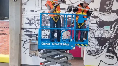 De Genie® GS ™ -1330m schaarhoogwerker biedt een maximale platformhoogte van 3,9 m en een maximale werkhoogte van 5,9 m, met een capaciteit van 2 personen of een totaal gewicht op platform van 227 kg en weegt slechts 885 kg. De Genie GS-1330m schaarhoogwerker is uitgerust met een efficiënt, volledig elektrisch gelijkstroom aandrijvingssysteem dat voldoende kracht biedt voor verplaatsingen binnenhuis met een stille werking en zonder uitstoot.