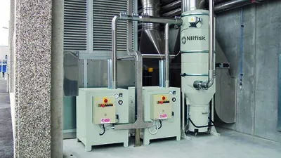 Door zijn buitengewone vermogen onderscheidt de vaste Nilfisk afzuiginstallatie zich op het meest gebied van flexibele middelen van een fabriek. Tegenwoordig is een centrale afzuiginstallatie integraal onderdeel van de productieprocessen. Doordat het systeem evenredig met de productiemachines opereert, is het continue verwijderen van productieafval en het schoonhouden van productielijnen kinderspel. Tevens zorgt het stofzuigsysteem, wat vacuüm creëert, voor een prominente efficiëntie, ook op het gebied van verpakkingsprocessen (bijvoorbeeld toast en sandwiches).