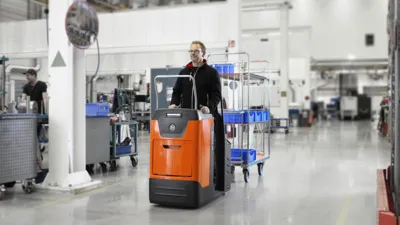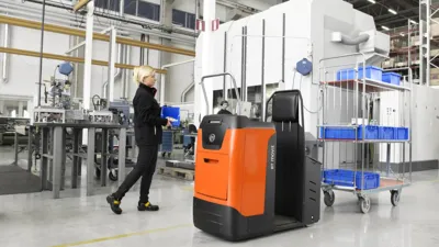 De BT Movit TSE100W is een truck met een uniek vernuftig vergrendelsysteem voor diverse karren dat met de voet te bedienen is. De bestuurder kan zonder zijn handen te gebruiken de kar aan- en afkoppelen. Niet voor niets dat deze trucks vanouds bekend staan als de BT Ergomover!