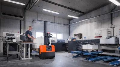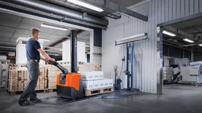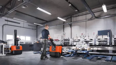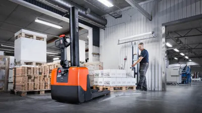 De BT HWE100 is een veelzijdige meeloopstapelaar die ingezet kan worden als pallettruck, orderverzameltruck of als mobiele in hoogte verstelbare werktafel. De HWE100S kan soortgelijke werkzaamheden uitvoeren met als verschil dat deze stapelaar van de uitvoering 'breedspoor' vrijdragende vorken heeft en dus alle pallets en lasten kan pakken met verstelbare steunpootarmen tot 1300mm.