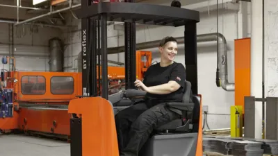 De ruime cabine, aanpasbare vloerhoogte, industriële stoel en de vingertip bedieningshendels zorgen voor extra comfort. Dit biedt de chauffeur naast extra comfort tevens een veilige en aangename werkplek. De compactheid en manoeuvreerbaarheid maakt de reachtruck uiterst geschikt in magazijnen met smalle gangen en stellingen. De bediening van de BT Reflex B-serie is simpel en vertrouwd met minihendels voor alle vorkbewegingen. Met het 360° stuursysteem is de reachtruck eenvoudig te manoeuvreren tussen stellingen.
