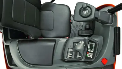 Productiviteit en Ergonomie hoog in het vaandel, dat blijkt wel uit features als een industriële hoogwaardige verstelbare stoel met opblaasbare onder-rugsteun, al dan niet met verwarming. Het stuur is telescopisch, in een hoek en hoogte verstelbaar.