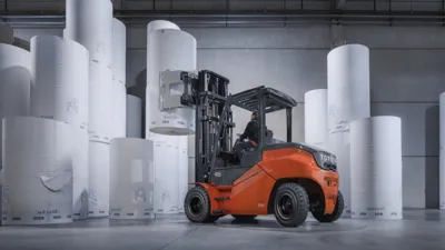 Het volledige ontkoppelde bestuurderscompartiment zorgt voor een minder trillingen en geluid. Deze zware vorkheftrucks komen uitstekend tot zijn recht in zware productieomgevingen waaronder constructie- en bouwmaterialen, de papiersector en de drankenindustrie. De trucks worden regelematig voorzien van industriële voorzetapparatuur waar ook goederen zonder pallet mee gehandled kunnen worden.